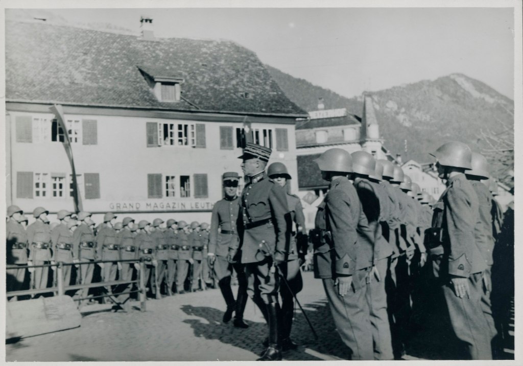 Guisan inspecting troops in Brunnen, Schwyz. Image is from ETH-Bibliothek Zürich, Bildarchiv.